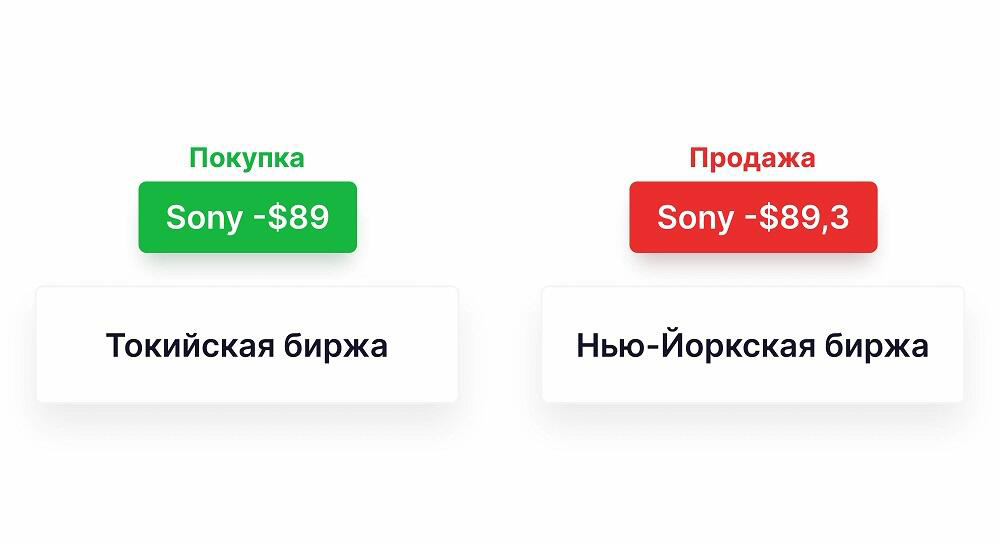 В трейдинге арбитраж подразумевает покупку и продажу таких активов, как акции, валюты, производные финансовые инструменты и криптовалюта. Если акция компании торгуется на Нью-Йоркской бирже по $5, а на Лондонской по $4,7 — это отличная возможность для арбитража. При условии, что прибыль окупит все издержки.