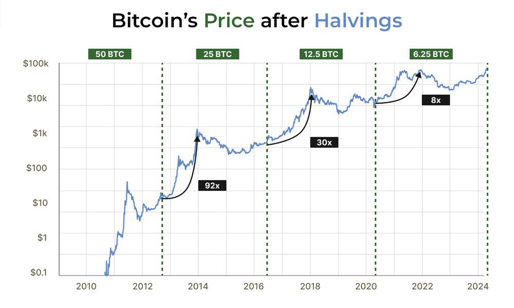Биткойн проходит через регулярные циклы, связанные с халвингом биткойна (уменьшение вознаграждения за блок в два раза), который происходит каждые четыре года. На графике представлены основные исторические буллраны и их продолжительность: