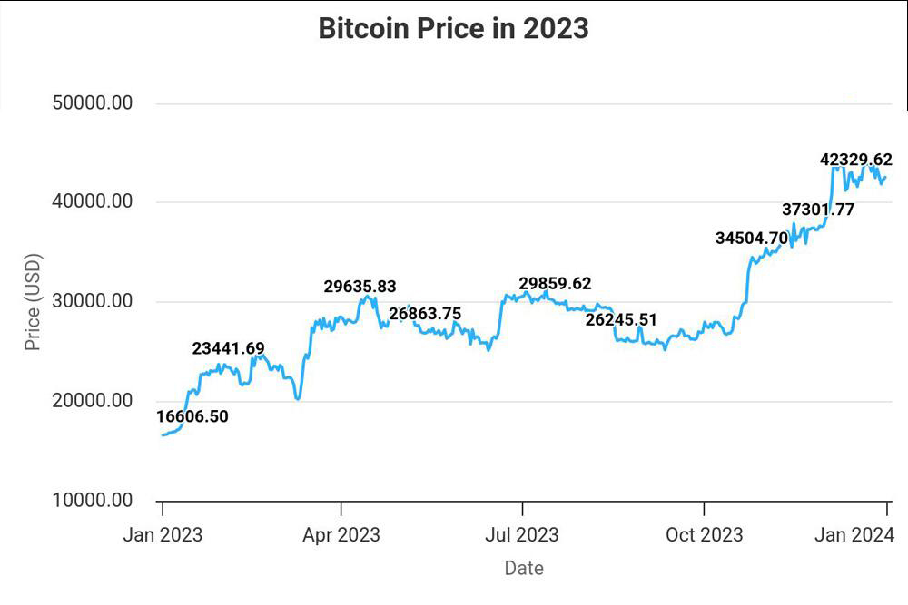 Очередной Bull Ran биткоина произошел в конце 2023 года – начале 2024 года. Поводом послужило разрешение Комиссии по ценным бумагам США (англ. The United States Securities and Exchange Commission, SEC) создать биржевые продукты на основе криптовалют доступные широким массам инвесторов, ранее не участвовавших в торговле криптовалютами.