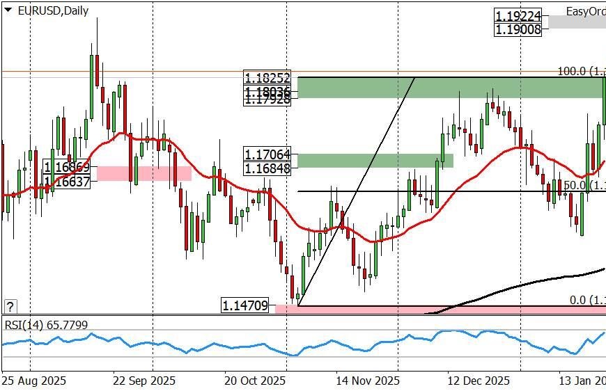 Текущая цена EURUSD на 27.01.2026 составляет 1.19366 USD.