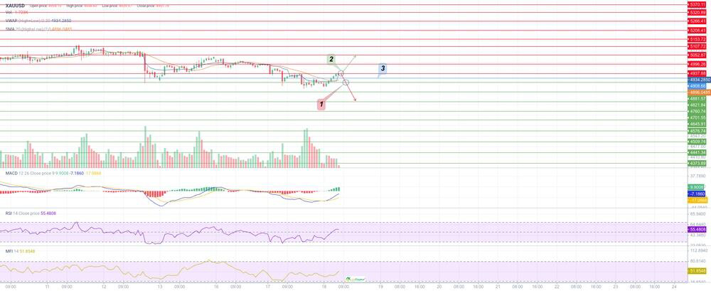 - Альтернативный сценарий: открытие длинных позиций (2) на повышенных объемах выше уровня $4937,88 с целями $4996,26, $5052,87, $5107,72, $5153,72, $5208,41, $5266,41, $5320,89, $5370,11. Стоп-лосс (3) — $4908,66.
