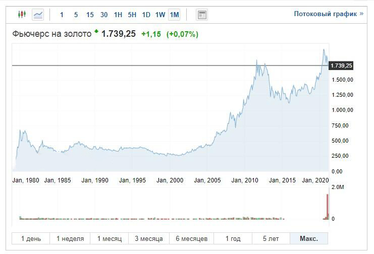Стремительный рост котировок XAU/USD стартовал в начале 2000-х годов. За последние 20 лет доходность металла составила 530%, но были периоды длительных просадок.
