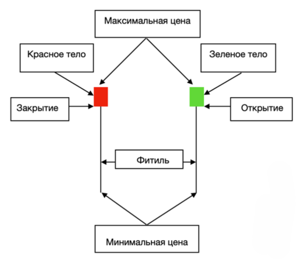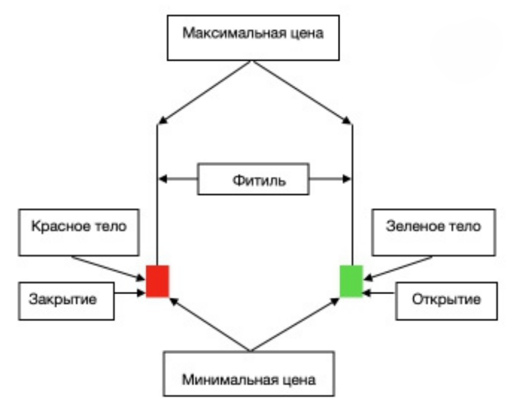 Тело свечи такое же маленькое с длинным нижним фитилем, который больше самого тела минимум в 2-3 раза. Цвет свечи аналогичным образом не имеет значения, оно может быть окрашено как в зеленый, так и в красный цвет.