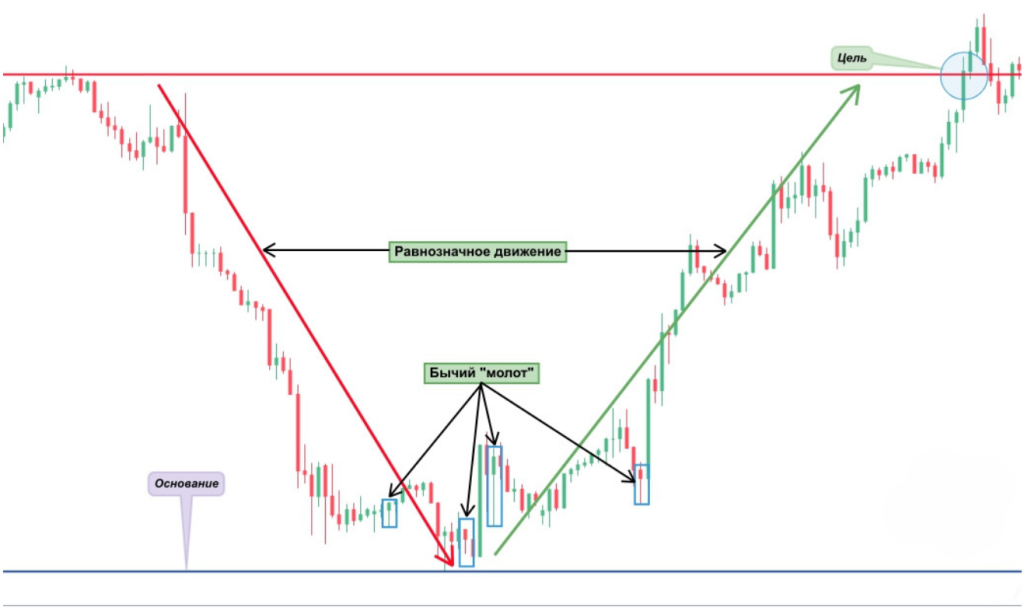 Бычий «перевернутый молот» — это фигура разворота цены в основании.