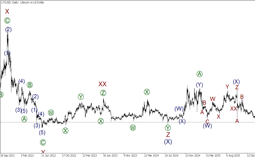 Волновой анализ Лайткоин на неделю от 16.02.2026