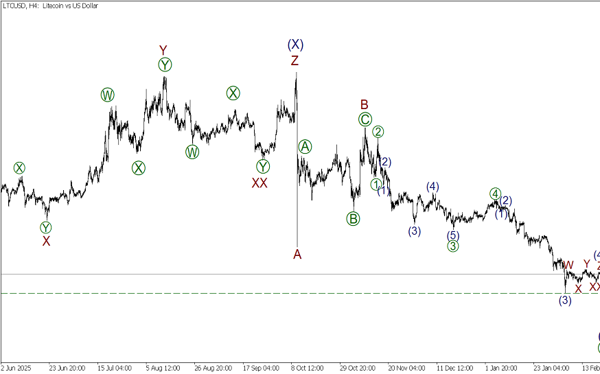 Волновой анализ Лайткоин на неделю от 23.02.2026