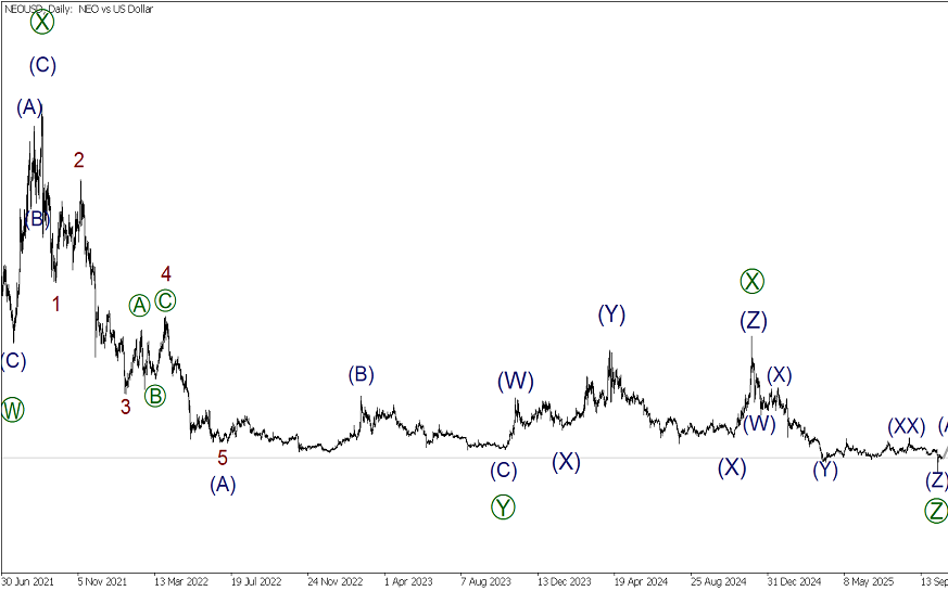 • Максимальная цена NEO была достигнута 15.01.2018 и составила $198.6. Исторический минимум зафиксирован 11.10.2025 на уровне $2.34.
