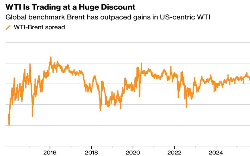 Несмотря на то, что Соединенные Штаты находятся в куда лучшем положении, чем другие страны, у них нет хорошего выхода из конфликта на Ближнем Востоке. Благодаря сланцевому буму, американцы стали нетто-экспортерами энергетических товаров, запасы нефти у них растут. Это приводит к самому широкому спреду Brent- WTI за десятилетие.