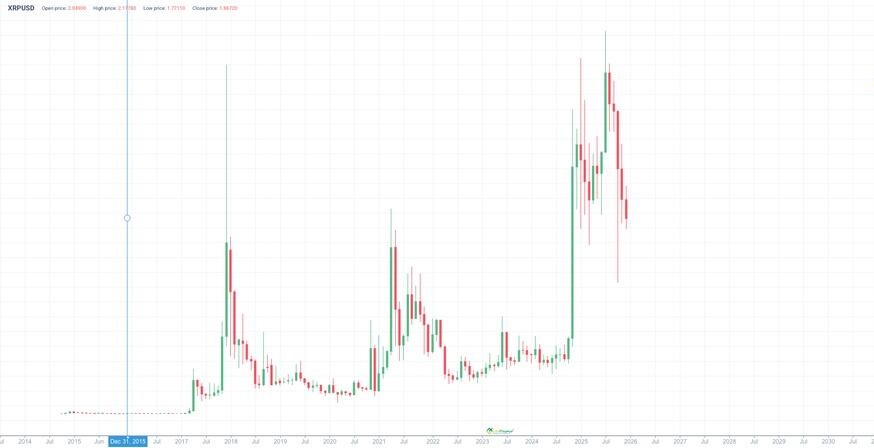 Чтобы сделать наши прогнозы максимально точными, важно оценить исторические данные. Ниже представлен график XRP за последние десять лет.