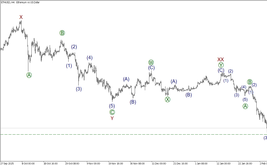 • ETHUSD: продолжается развитие медвежьей волны Z. Можно рассматривать короткие позиции с целью на уровне 1772.19.