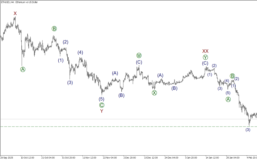• ETHUSD: продолжается развитие медвежьей волны Z. Можно рассматривать короткие позиции с целью на уровне 1772.19.