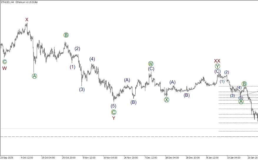 - ETHUSD: продолжается развитие медвежьей волны Z. Можно рассматривать короткие позиции с целью на уровне 1694.49.