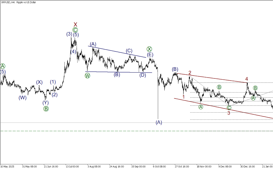 - XRPUSD: продолжается снижение в рамках конечного диагональника. Рекомендуется рассматривать короткие позиции с целью на уровне 1.063.