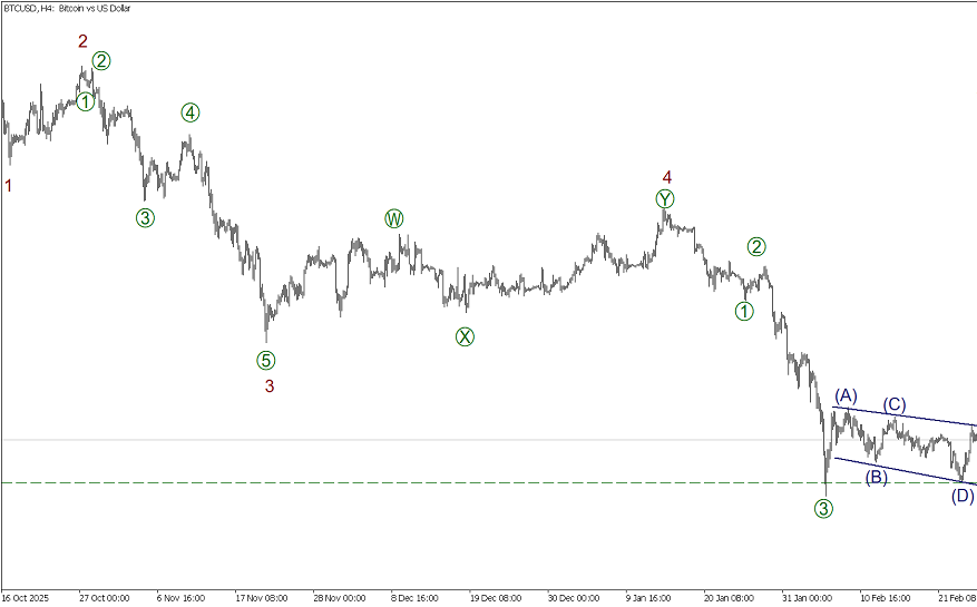 - BTCUSD: предполагается развитие конечной части импульса 5. Рекомендуется рассматривать сделки на продажи с целью на уровне 62400.00.