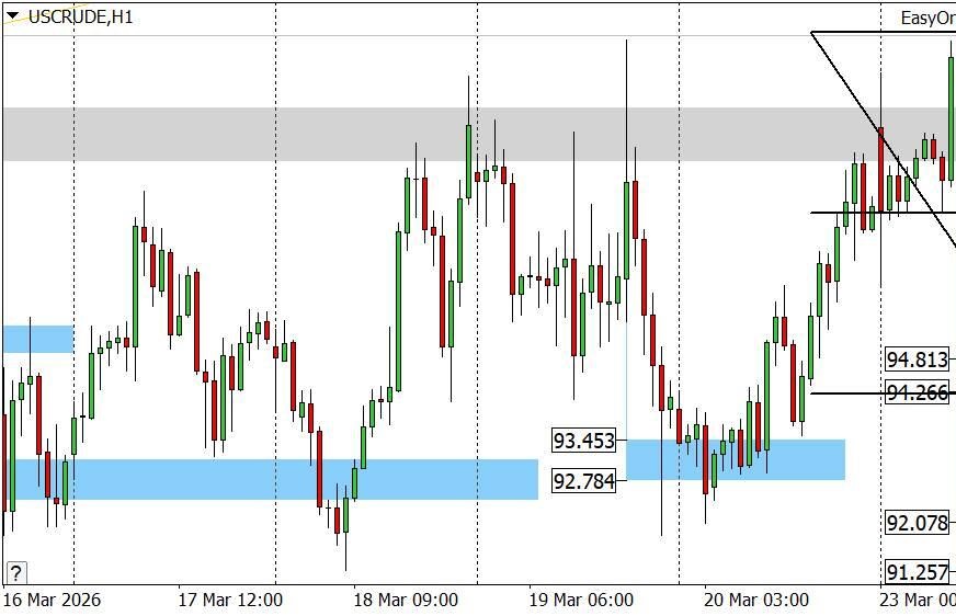 Краткосрочный прогноз по нефти, золоту и EURUSD на 23.03.2026
