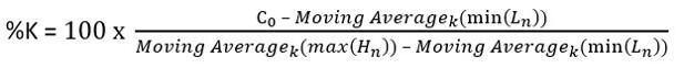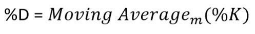 Сплошная оранжевая линия на изображении выше называется %K, а синяя линия – это 3-периодная скользящая средняя кривой %K.