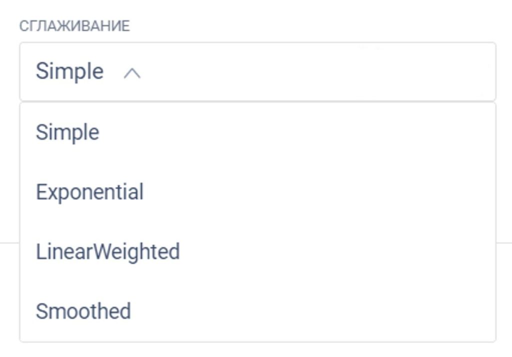 - Simple – классическое сглаживание с применением простой скользящей средней (SMA).