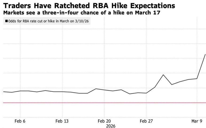 - Рынки на 70% уверены в повышении cash rate в марте.
