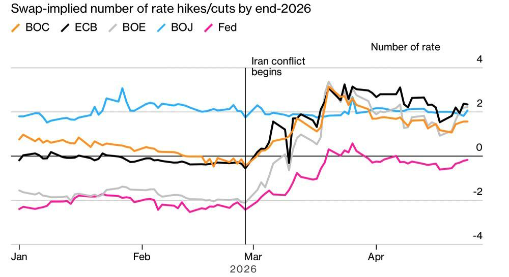 Динамика рыночных прогнозов по ставкам центробанков