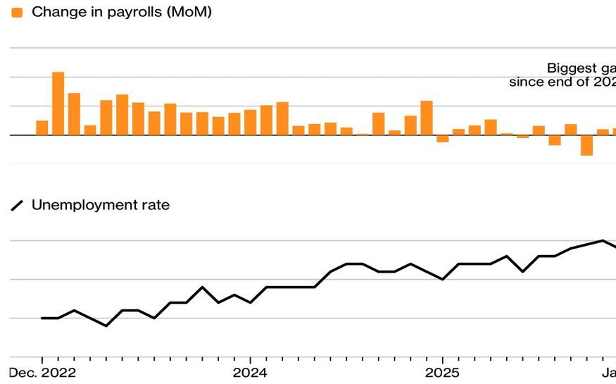 Луч света в темном царстве. Январский отчет о рынке труда США оказался не просто хорош, а очень хорош. Занятость выросла на 130 тыс, вдвое превысив прогнозы, а безработица неожиданно сократилась с 4,4% до 4,3%. Учитывая, что в 2025 создавалось только 15 тыс. новых рабочих мест в месяц, старт 2026 свидетельствует о явном прогрессе. Однако будет ли ФРС обращать внимание на одну точку данных? Рынок сомневается, и EURUSD катается на американских горках.