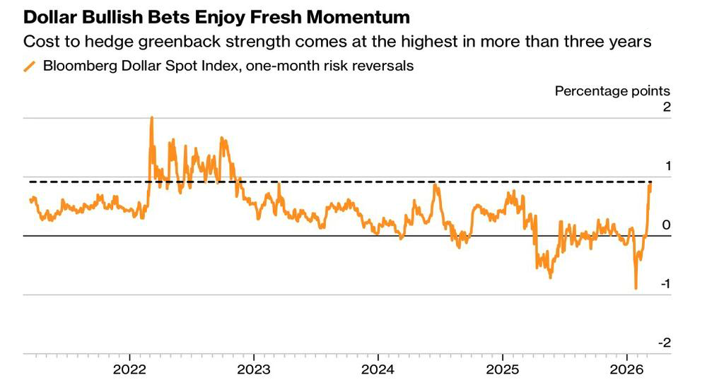 Другие центробанки следуют за своим вожаком. Срочный рынок отказался от идеи, что Банк Англии сократит ставку РЕПО дважды в текущем году. Шансы на то, что это произойдет один раз, составляют фифти-фифти. ЕЦБ может и вовсе поднять ставку по депозитам два раза. Хотя до конфликта на Ближнем Востоке инвесторы верили, что он не будет предпринимать каких-либо действий. Чем выше стоимость заимствований и связанная с ней доходность глобального рынка долга, тем тяжелее мировой экономике оставаться на плаву. Нефтяной кризис способен привести к стагфляции и рецессии. И выиграют от этого более изолированная от войны в Иране американская экономика и доллар США.