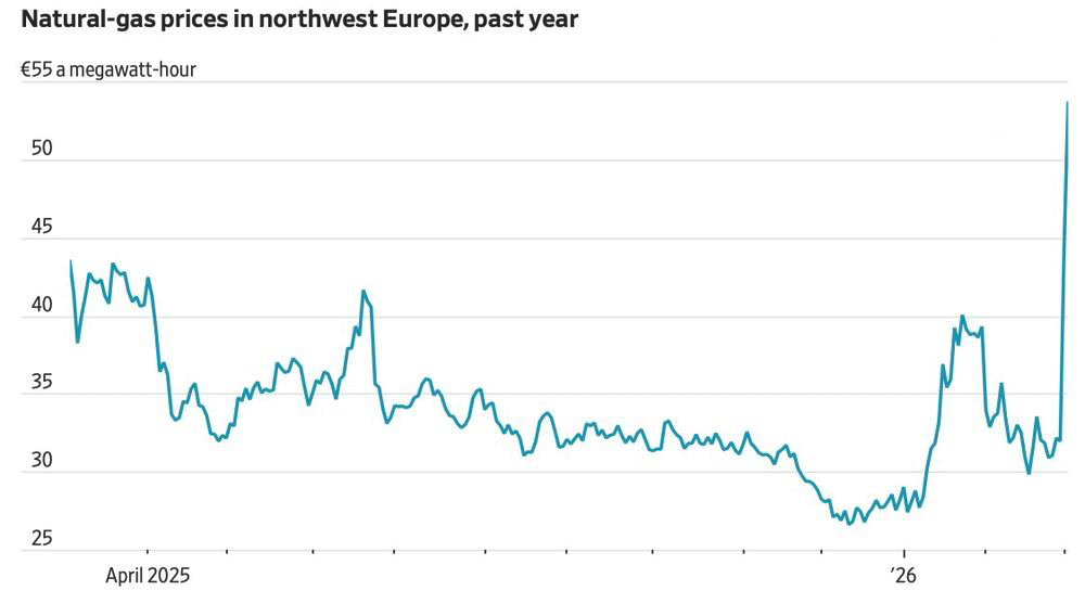 Прежде всего, Европа, где стоимость газа взлетела на 70% в течение двух торговых дней на слухах о перекрытии Ормузского пролива с последующей информацией о сокращении добычи голубого топлива Катаром. Старый Свет немного расслабился после энергетического кризиса и сейчас стоит на пороге нового.