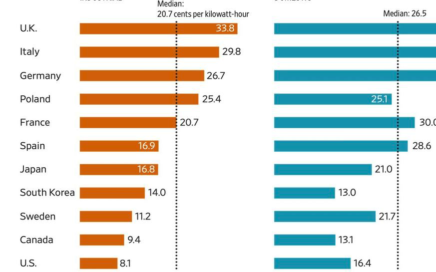 Европа, увы, этим похвастать не может. И проблема заключается в слишком высоких ценах на электроэнергию, необходимую для искусственного интеллекта. Старый Свет слишком рьяно стал переходить на зеленые технологии. Ему удалось сократить выбросы углерода на 30% по сравнению с 2005. В США эта цифра составляет 17%. Однако лекарство оказалось вреднее самой болезни: энергетический кризис случился не только из-за вторжения России в Украине. Слишком высокие цены на энергоносители убивают промышленность и перекрывают кислород инвестициям в ИИ.