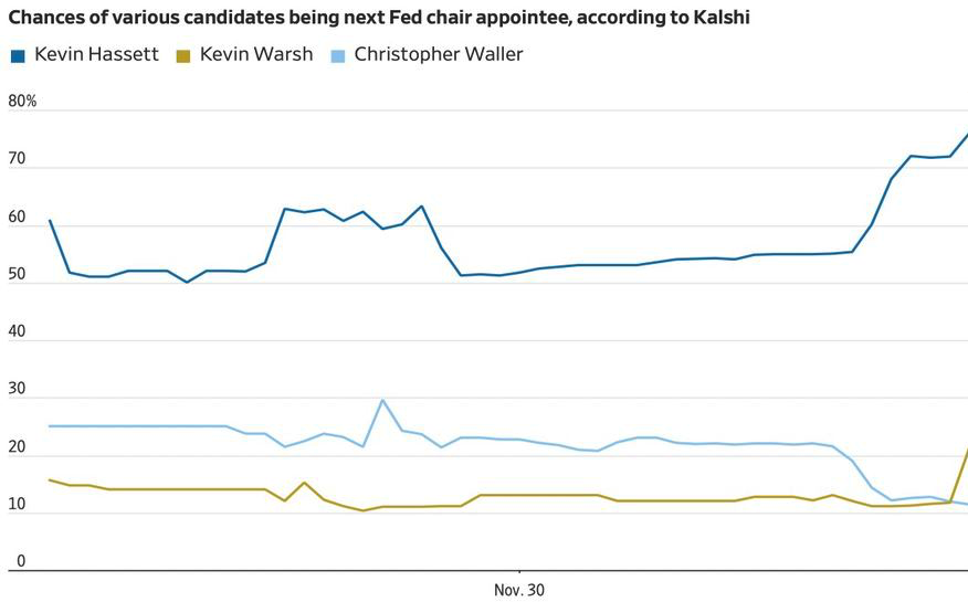 Второй козырь евро никто не отменял. Пока ЕЦБ разглагольствует о победе над инфляцией, Федрезерв намеревается снижать ставки. Шансы директора Национального экономического агентства Кевина Хассета на кресло председателя ФРС стремительно растут. А вместе с ними увеличиваются и масштабы предполагаемой монетарной экспансии.