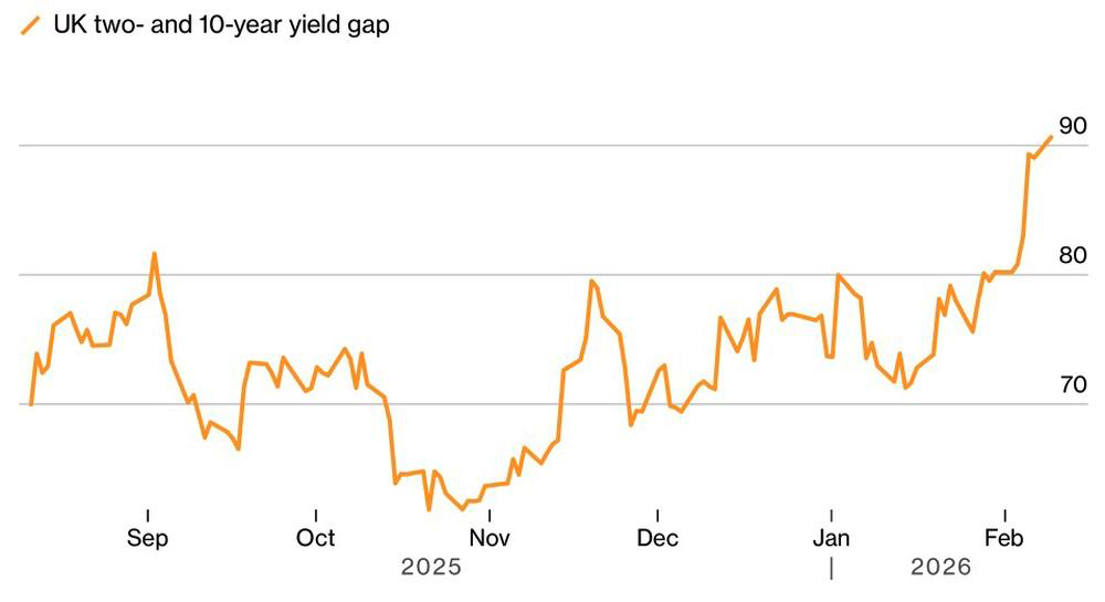 Британии потребуется больше займов, и долговой рынок реагирует ростом доходности долгосрочных облигаций. Напротив, ожидания скорого ослабления денежно-кредитной политики BoE приводят к падению ставок по краткосрочным бумагам. Кривая доходности повышается, что оказывает давление на фунт.
