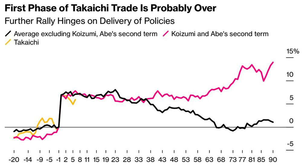Одним Трампом сыт не будешь. Если в США инвесторы активно пользуются TACO, то в Японии процветает торговля Такаити. Новый лидер Либерально-демократической партии намерена увеличить масштаб фискальных стимулов и может ставить палки в колеса BoJ в цикле монетарной рестрикции. Ее позиция позволяет рынкам делать ставки на покупку акций, продажу облигаций и иены. Однако в этой стратегии есть немало подводных камней, что доказывает динамика USDJPY.