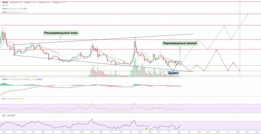 Для прогнозирования курса AUSD (Vaulta) проведем технический анализ недельного графика.
