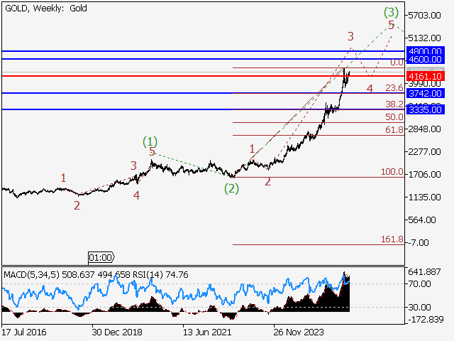 Длинные позиции актуальны от коррекций выше уровня 4161.10 с целью 4600.00 – 4800.00.
