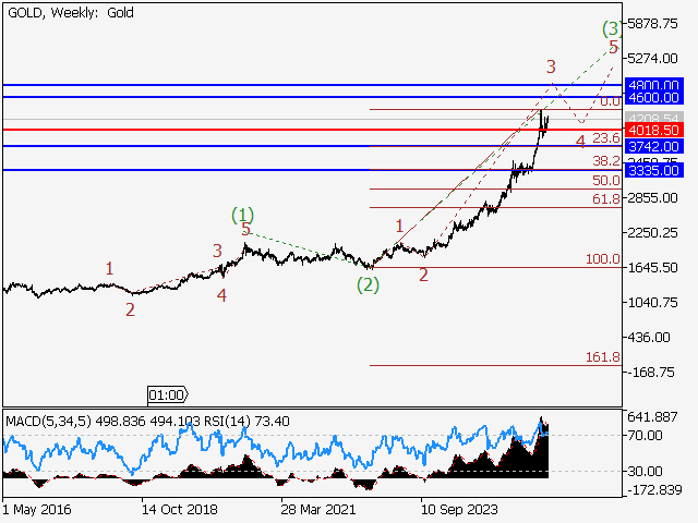 Длинные позиции актуальны от коррекций выше уровня 4018.50 с целью 4600.00 – 4800.00.