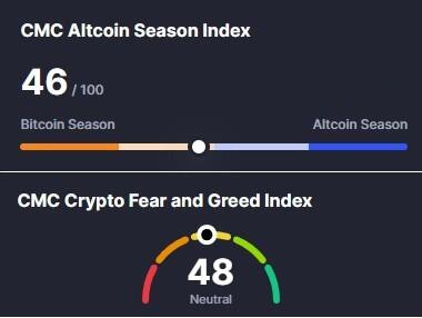 Altcoin Season Index равен 46 из 100, что указывает на переходный период между доминированием биткоина и альткоинов. Это может означать неопределенность в движении рынка ZEC. Индекс страха и жадности равен 48. Это говорит о том, что трейдеры пока осторожны и не склонны к чрезмерному риску. В краткосрочной перспективе движение цены ZEC может замедлиться.